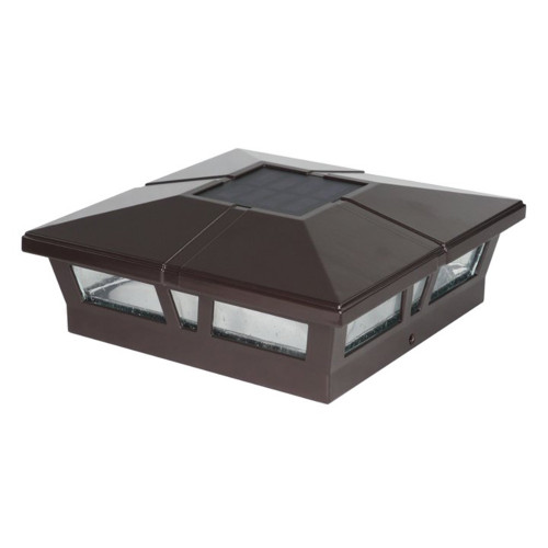 AQLighting is excited to feature the Brown Cambridge Solar Post Cap Light by Classy Caps. The heavy duty, weather resistant cast aluminum fixture with a durable powder coat finish makes this light a perfect addition to outdoor decks, patios, pathways, and more! No wiring needed thanks to the solar powered, high output integrated LED's that feature an automatic on/off switch that toggles accordingly, casting a rich ambient light. With it's durability and high-end solar technology the Cambridge Solar Post Cap will surely bring life to your outdoor applications with ease. Surface mount will fit over an actual 6”x6” or 5.5”x5.5” post.